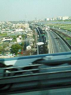 首都高の上を通過中。