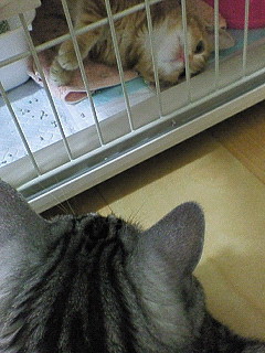 もうしばらくケージ猫ですよ。ごめんね仔ニャンコ。