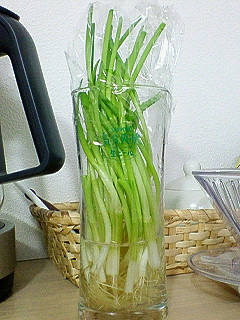 根っこの白い部分2センチほど切って水に浸けておいたら一週間ほどでこんなにのびましたー。