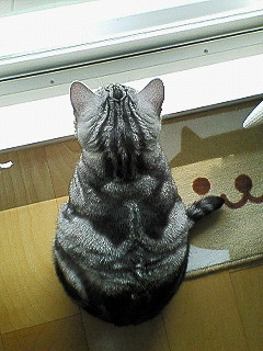 写真は昼間、強風で巻き上がるゴミホコリが気になってそわそわしてるニャンコ。