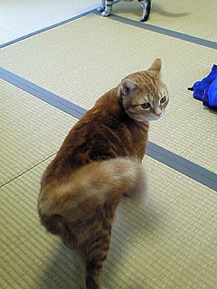 さっきからニャンズ達がお互い驚かし合って、2匹そろって尻尾がぶんぶくりん。チィはその形状上、リスっぽくなります。