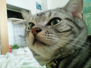 「今朝5時前、腹ペコでどーしても猫缶が食べたくて、いつもは猫ぱんち数発の後に噛み付いて飼い主を起こすのに、今朝はついいきなり飛び付いてかじっちゃったにゃ。