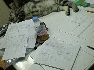 まだまだ盆休みモードで主婦業三昧ですが、隙をみて原稿の下書き始めました。これはノエ本、秋の新刊(希望)。30ページくらいかな?ネーム終わってないので、まだよくわからないのですが。