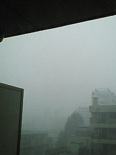 ベランダ越しの景色がこんなに雨でけむるのも珍しいです。