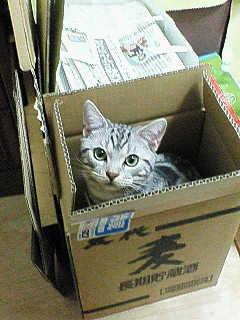 昨日、我が家に届いた段ボール箱に、早速収まってみるニャンコ。