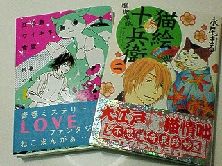 写真は、最近ゲット&読んだマンガ。2冊ともニャンコマンガ。読みごたえあり。