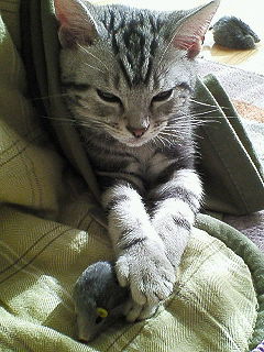 クロウへの手土産におもちゃを貰いました。貰ったおもちゃと一緒にまどろみ中。おもちゃにはチュー太ジュニアと命名。