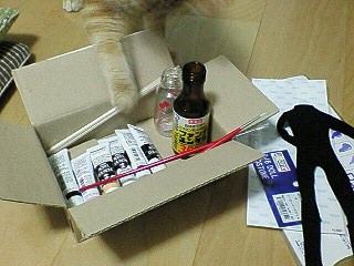 アゾンのヒーローベースに放置しっぱなしだったアクリル絵の具、邪魔するニャンコ、その他いろいろ。