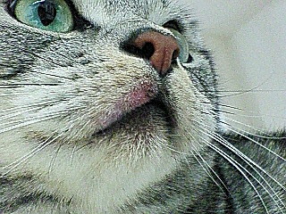 これまでに何度も口の周りや肉球周りが赤く腫れて、その度に通院したクウ。