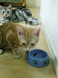 クゥ「いいからもっとゴハンくれにゃ」(視線痛い;)